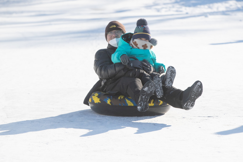 Des visiteurs s'amusent au parc du Carnaval de glace et de neige sur la rivière Songhua, à Harbin, dans la province chinoise du Heilongjiang (nord-est), le 1er janvier 2023