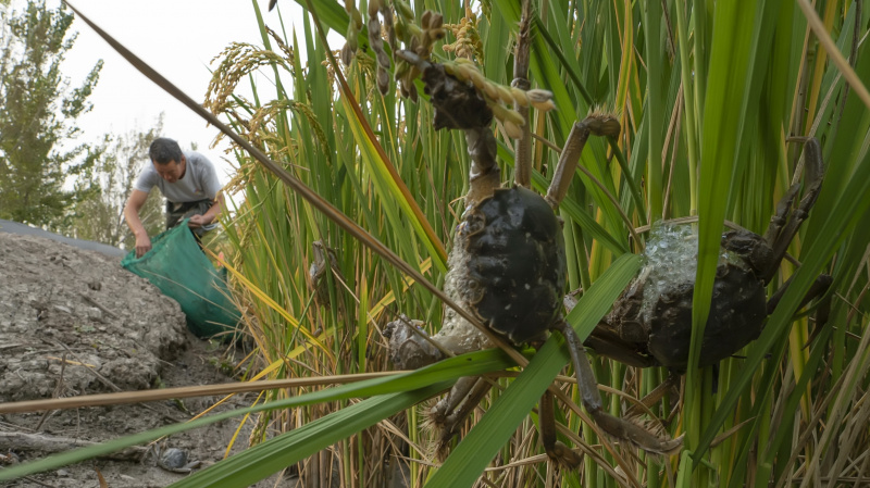 Des crabes dans les rizières d'un village de la ville de Tangshan, dans la province chinoise du Hebei (nord), le 22 septembre 2020