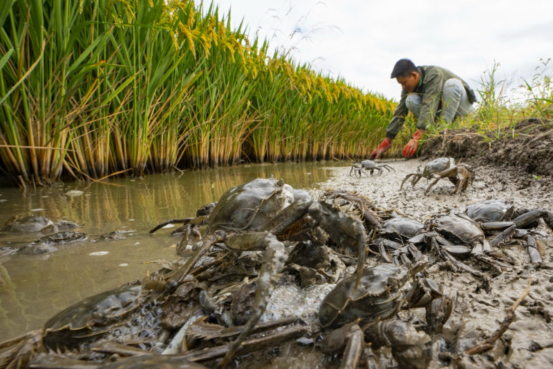 Ces dernières années, les autorités locales de Tangshan ont déployé des efforts dans la production de riz biologique. Les gens ont développé un mode d'éco-agriculture de riz-crabe commensal. Ce mode a créé une nouvelle méthode permettant aux agriculteurs d'augmenter leurs revenus. - Photo : Mu.