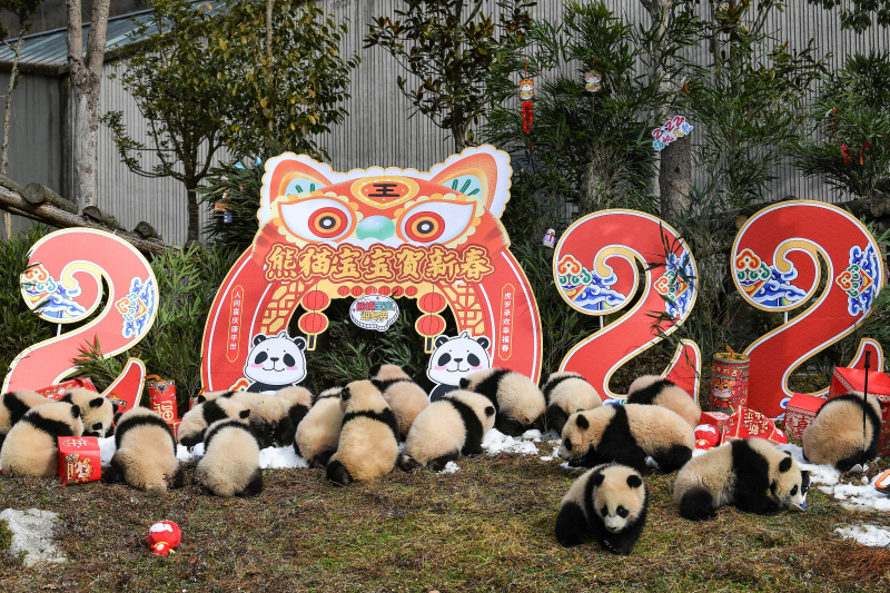 Des pandas géants nés en 2021 ont fait une apparition collective lors d'un événement organisé à l'occasion de la fête du Printemps à venir. - Photo : Wang.