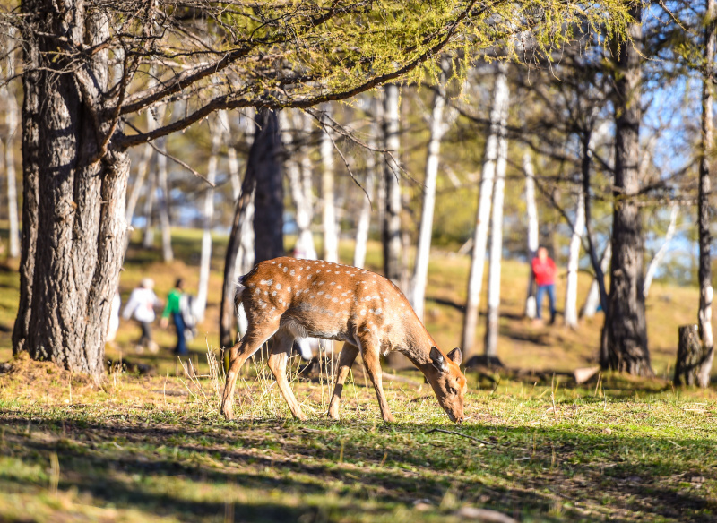 Un cerf sika se nourrit dans un parc à cerfs à Arxan de la Ligue de Hinggan, dans la région autonome de Mongolie intérieure (nord), le 20 septembre 2022. - Photo : Peng Yu