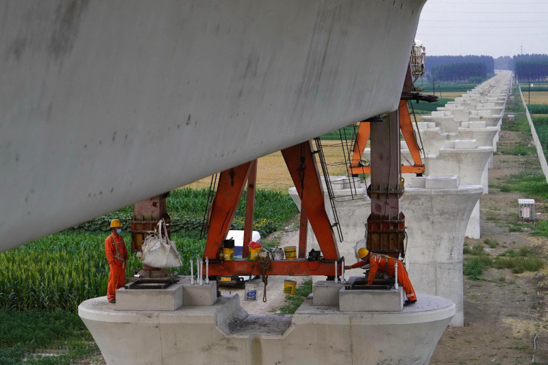 Le chantier de construction du chemin de fer interurbain reliant Beijing, capitale de la Chine, et Tangshan, dans la province du Hebei (nord de la Chine), le 2 juillet 2020. - Photo : Yang Shiy