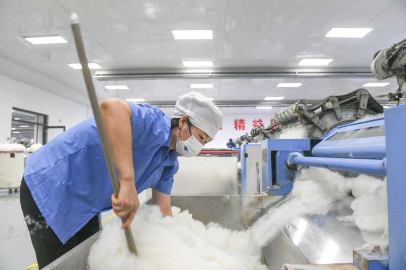 Des employés dans une usine du groupe Erdos Cashmere, à Erdos, dans la région autonome de Mongolie intérieure, dans le nord de la Chine, le 9 février 2023. - Photo : Li Zhipe