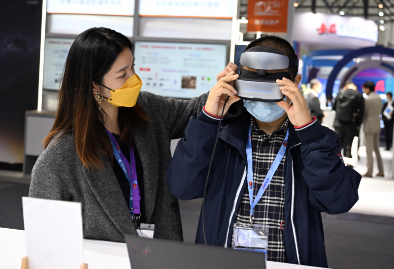 Un visiteur essaie un produit lors de la Conférence mondiale sur les circuits intégrés 2022 à Hefei, dans la province chinoise de l'Anhui, le 17 novembre 2022
