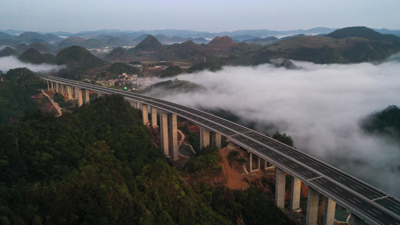 La construction de l'autoroute Guiyang-Huangping est entrée dans la phase finale et s'achèvera cette année. La ligne principale de l'autoroute mesure 120,6 km et reliera le Guizhou à la région du delta du fleuve Yangtsé. - Photo : Yang Wenb.