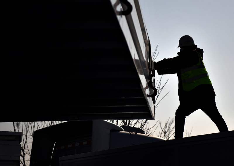 Un ouvrier travaille sur le chantier d'un centre de quarantaine temporaire à Yuzhou, ville de la province chinoise du Henan (centre), le 14 janvier 2022