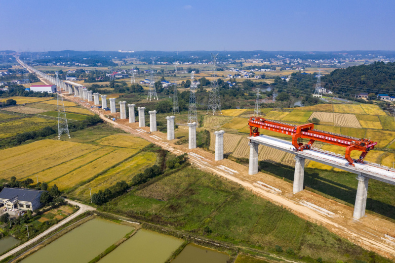 Chantier de construction du pont Baquhe le long du chemin de fer à grande vitesse Changde-Yiyang-Changsha, dans la province chinoise du Hunan (centre), le 11 octobre 2020. - Photo : Du Hua