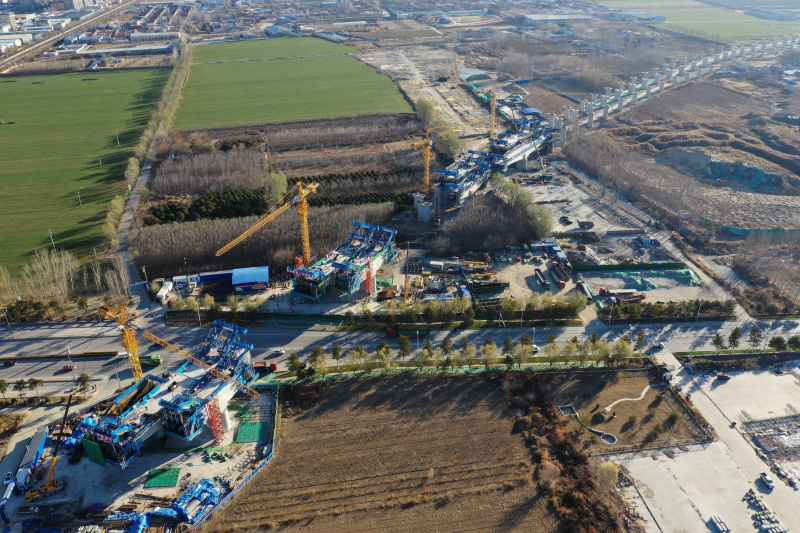 Ce chemin de fer interurbain de 148,74 kilomètres avec une vitesse conçue de 350 kilomètres par heure reliant Beijing, capitale de la Chine, et Tangshan, une ville portuaire de la province du Hebei, est en construction. - Photo : Xing Guang.