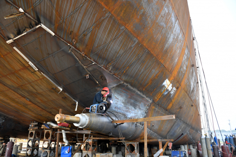 Un ouvrier dans une entreprise de construction navale à Yuanjiang, dans la province chinoise du Hunan, le 1er mars 2023