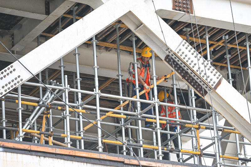 Un ouvrier travaille sur un chantier du site de lancement d'engins spatiaux commerciaux de Hainan, à Wenchang, ville de la province chinoise de Hainan (sud), le 13 mai 2023