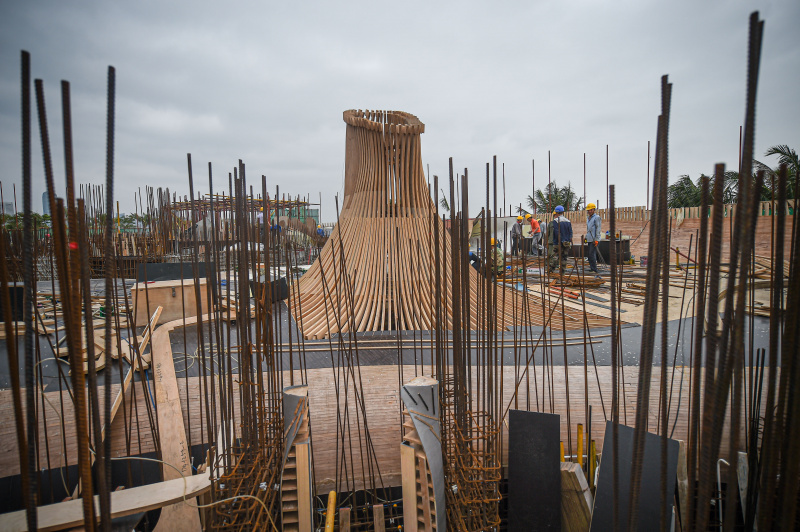 Une fois construite, cette bibliothèque sera un emblème dans la baie de Haikou. - Photo : Pu Xiao.