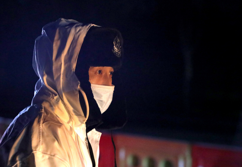 Un policier en service à un point de contrôle temporaire pour le contrôle de l'épidémie sur une route reliant l'arrondissement de Gaocheng à la zone urbaine de Shijiazhuang, dans la province chinoise du Hebei (nord), le 9 janvier 2021. - Photo : Jin Haoyu
