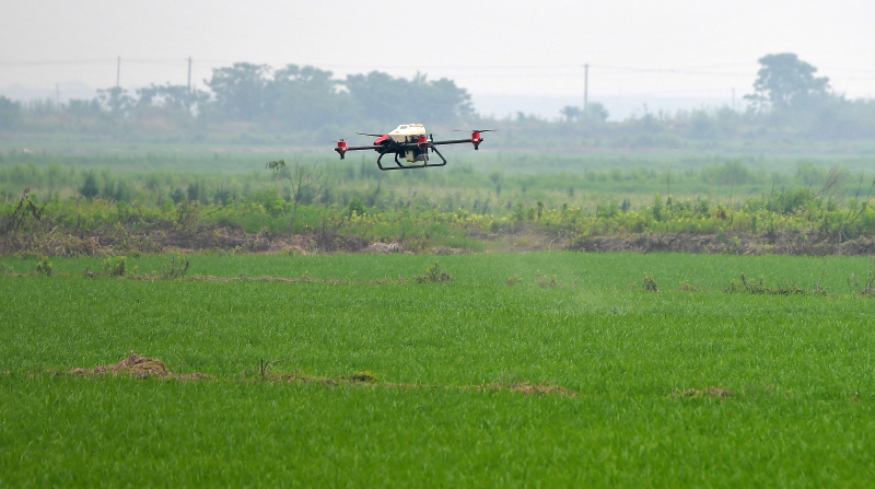 Des agriculteurs utilisent des drones pour l'épandage de pesticides afin d'assurer le développement de rizière de plus de 52.000 hectares dans le district de Nanchang. - Photo : Peng Zhaoz.