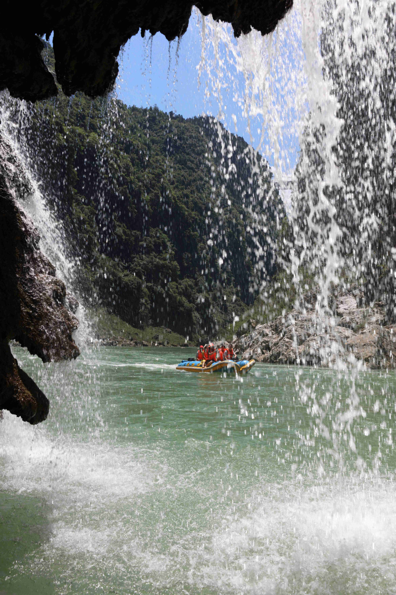 Des touristes font du rafting dans le site touristique de Maoyanhe à Zhangjiajie, dans la province chinoise du Hunan (centre), le 4 août 2020 - Photo : Wu Yongbi