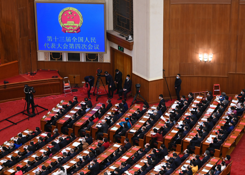 La réunion de clôture de la quatrième session de la 13e Assemblée populaire nationale (APN) se tient au Grand Palais du Peuple à Beijing, capitale chinoise, le 11 mars 2021. - Photo : Pang Xingl