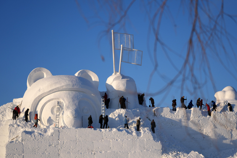Une sculpture sur neige lors de la 34e Exposition internationale d'art de sculpture sur neige de Sun Island, à Harbin, dans la province chinoise du Heilongjiang (nord-est), le 24 décembre 2021. - Photo : Wang Jianw