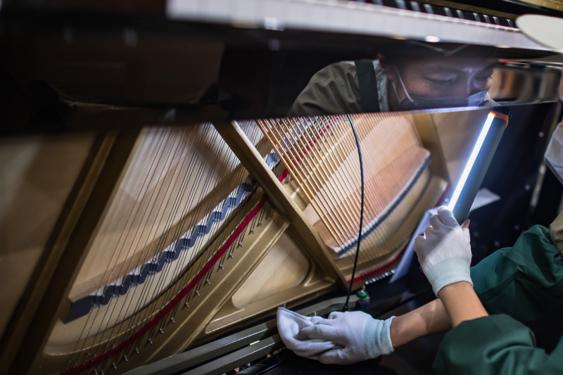 La fabrique de pianos de Parsons Music Corporation à Yichang est une des plus grandes bases de production de pianos au monde. Plus de 2.000 professionnels y fabriquent, ajustent et assemblent des pianos pour apporter au monde le plaisir de la musique. - Photo : Xiao Yij.