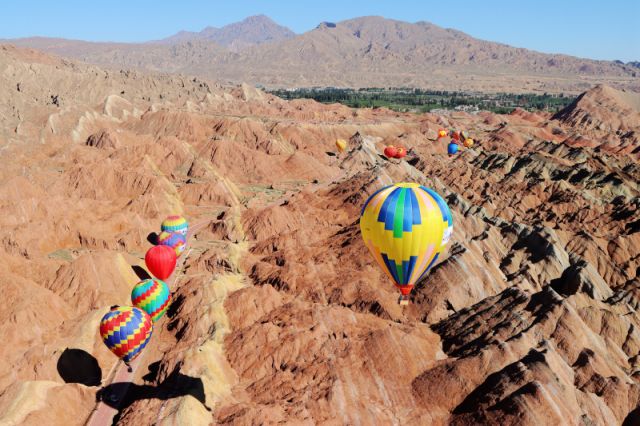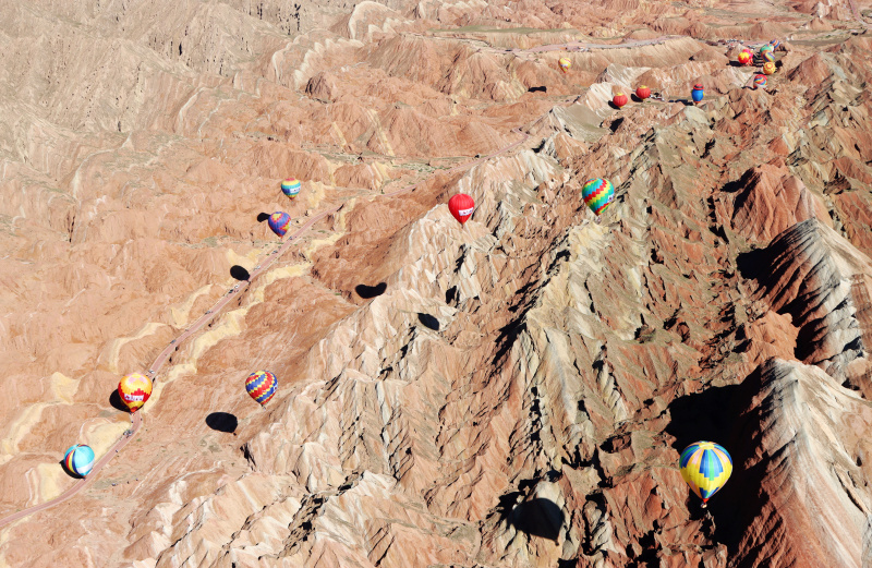 Un festival international de montgolfières s'est ouvert dimanche à Zhangye. Cent montgolfières présenteront des spectacles lors de l'événement. - Photo : Cheng L.