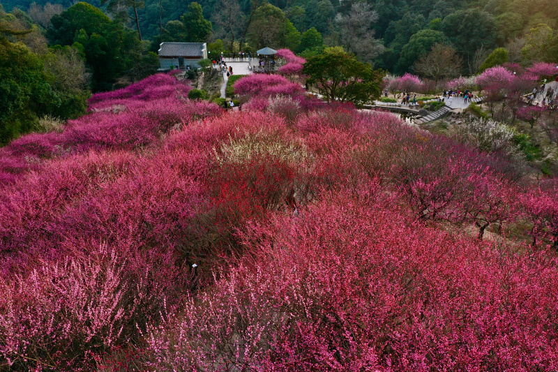 Des fleurs de cerisier dans le parc forestier national de Fuzhou, à Fuzhou, dans la province chinoise du Fujian (sud-est), le 1er février 2021. - Photo : Wei Peiqu