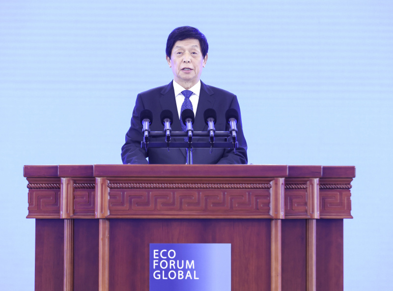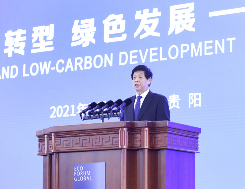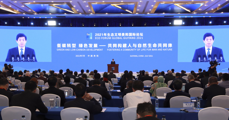 Li Zhanshu, président du Comité permanent de l'Assemblée populaire nationale (APN), prononce un discours à la cérémonie d'ouverture du Forum écologique mondial de Guiyang 2021, à Guiyang, capitale de la province chinoise du Guizhou (sud-ouest), le 12 juillet 2021. - Photo : Pang Xingl