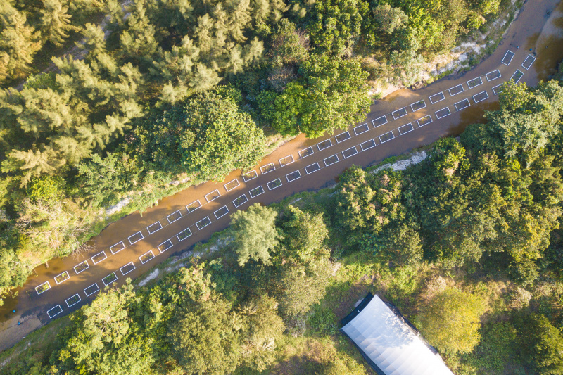 Photo d'"îles flottantes artificielles" installées sur un affluent de la rivière Baoling, à Wenchang, dans la province chinoise de Hainan (sud), le 24 décembre 2022