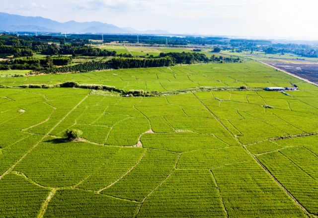 Photo aérienne d'un champ de production de semences dans la ville de Dongfang, de la province chinoise de Hainan (sud), le 15 octobre 2022