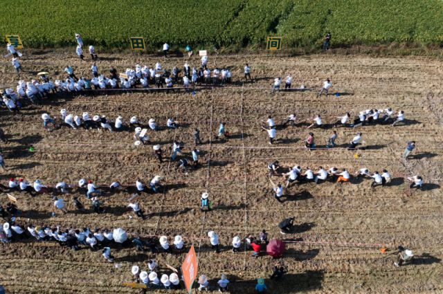 Un événement sportif sur le thème des rizières a eu lieu mercredi à Datong. Les jeux comprenaient la récolte du riz, la course de brouettes, le relais de transport de riz et le tir à la corde. - Photo : Xu.