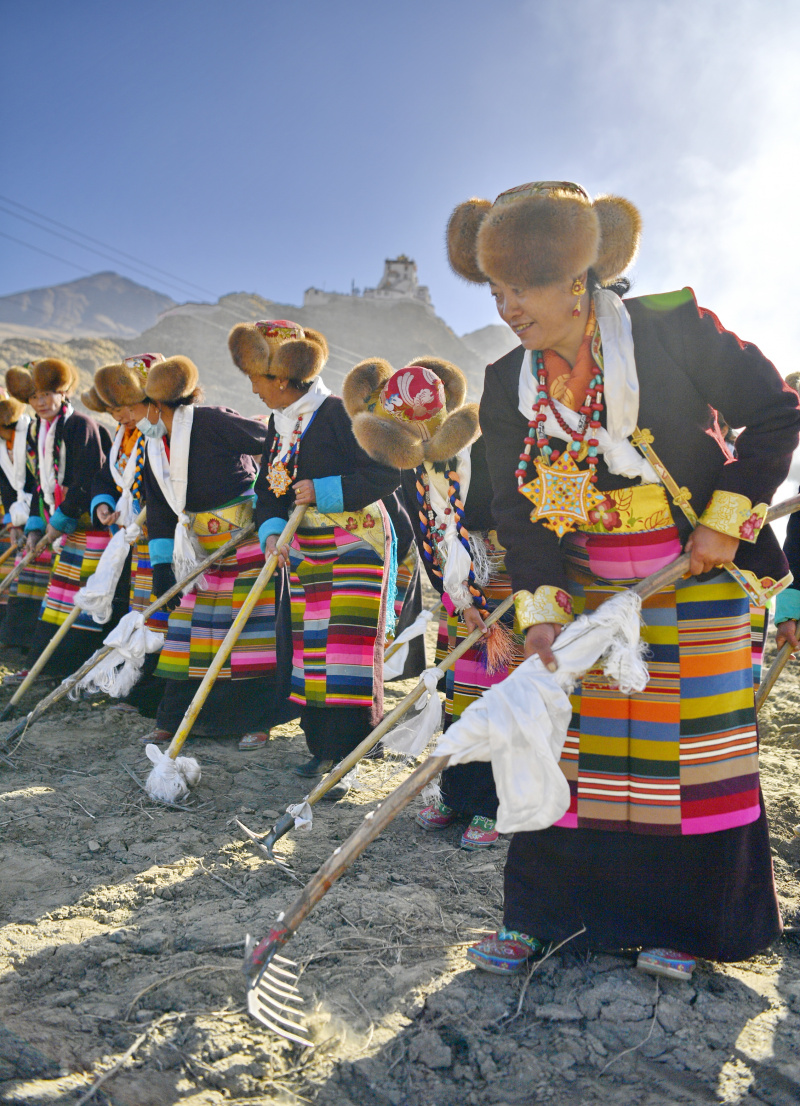 La cérémonie annuelle du labour printanier a eu lieu le 16 mars au Tibet pour prier pour une récolte abondante de l'année. - Photo : Cho.
