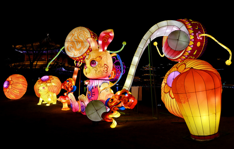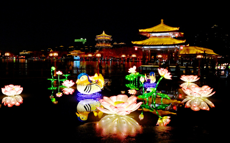 Des lanternes dans le Paradis des Tang à Xi'an, dans la province chinoise du Shaanxi (nord-ouest), le 24 janvier 2023