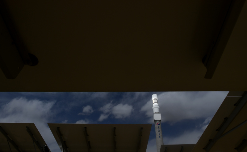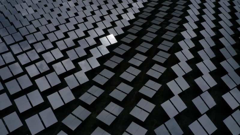 Des installations d'un projet d'électricité solaire thermique dans le district de Gonghe, dans la préfecture autonome tibétaine de Hainan, dans la province du Qinghai, dans le nord-ouest de la Chine, le 16 avril 2021