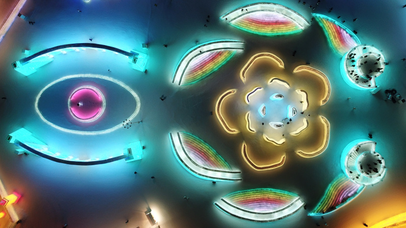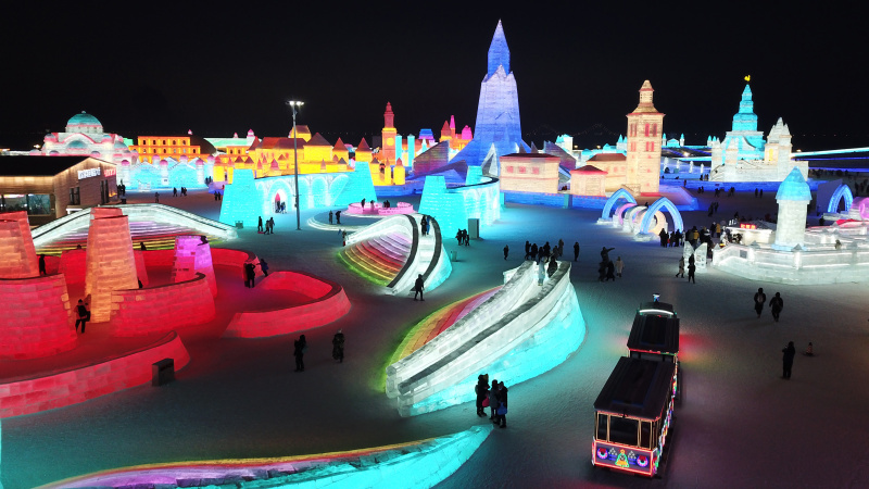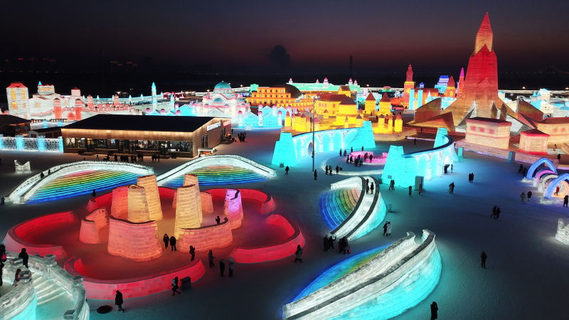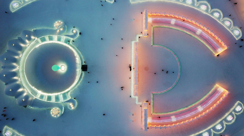 Vue aérienne du Monde de glace et de neige de Harbin, à Harbin, dans la province chinoise du Heilongjiang (nord-est), le 4 janvier 2021. - Photo : Wang Jianw