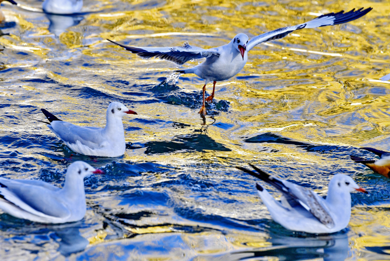 Des mouettes rieuses dans le parc Longwangtan, à Lhassa, dans la région autonome du Tibet (sud-ouest), le 17 novembre 2021. - Photo : Zhang Rufe