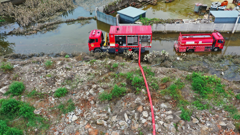 Plus de 800 secouristes envoyés par Tangshan, Handan, Hengshui et d'autres villes de la province oeuvrent 24 heures sur 24 dans les zones les plus inondées de Zhuozhou, afin de permettre le retour à la normale le plus rapidement possible. - Photo : Mu.