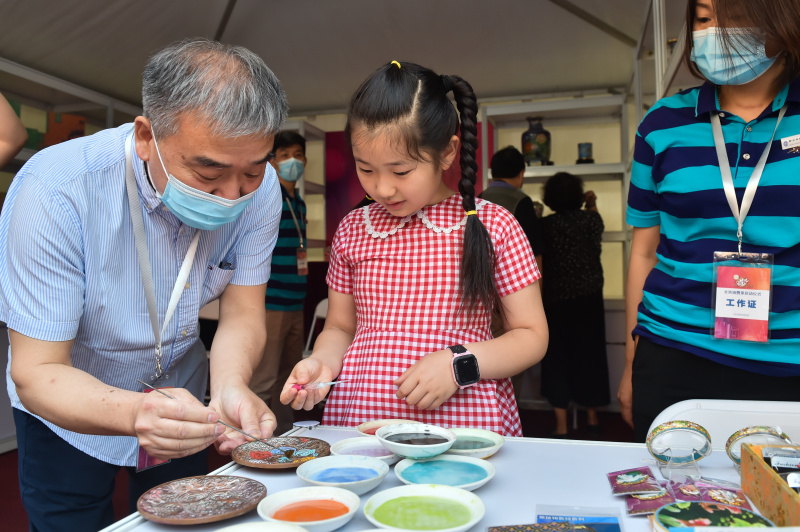 Une fille apprend l'art du cloisonné lors d'une animation à Beijing, capitale de la Chine, le 6 juin 2020