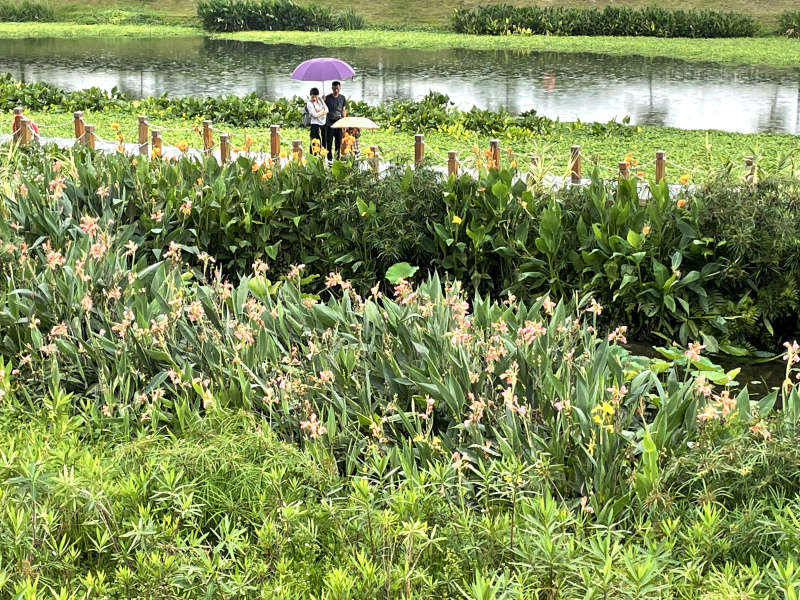 Des touristes visitent le parc de la zone humide de la rivière Nakao à Nanning, dans la région autonome Zhuang du Guangxi (sud), le 5 mai 2021. - Photo : Zhou H