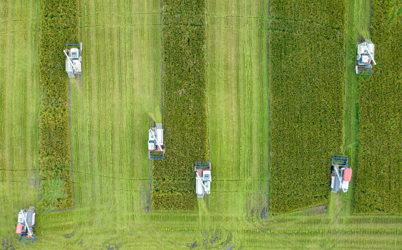 Des agriculteurs font la récolte dans les champs, à Hai'an, dans la province chinoise du Jiangsu (est), le 3 octobre 2022