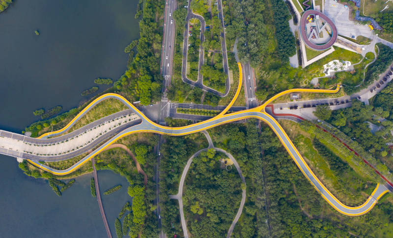 Vue aérienne d'une partie de la "route verte" à Tangshan, dans la province chinoise du Hebei (nord), le 10 juillet 2020