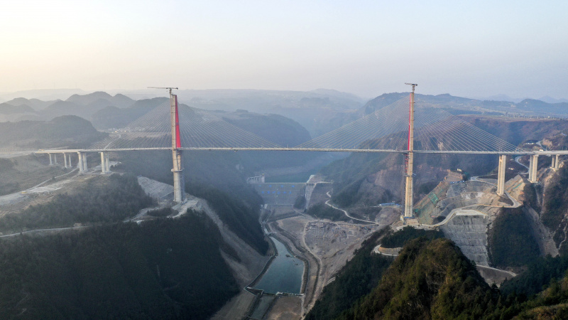 Photos : Un pont en construction dans le sud-ouest de la Chine