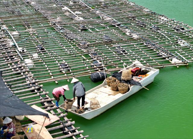Des agriculteurs récoltent des huîtres à Qinzhou, dans la région autonome Zhuang du Guangxi, dans le sud de la Chine, le 4 octobre 2023