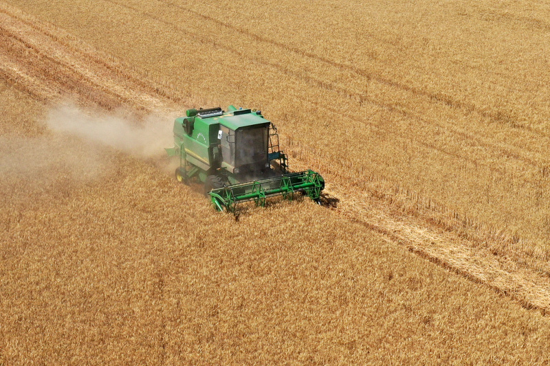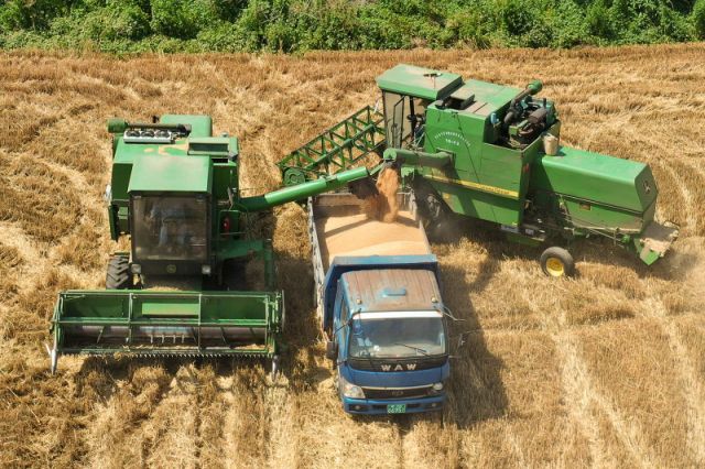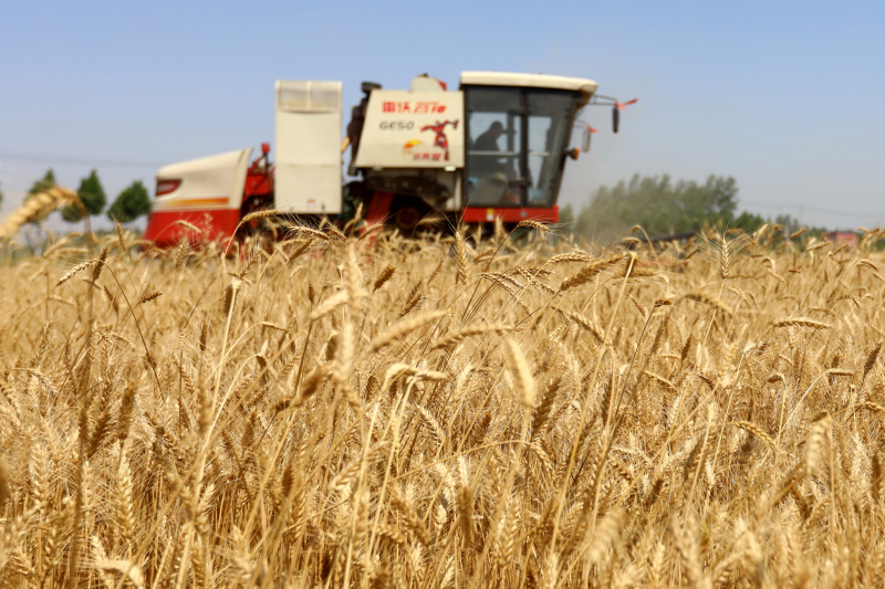 Une moissonneuse de blé dans le village de Wupu, à Sipu, bourg du district de Suixi, à Huaibei, dans la province chinoise de l'Anhui (est), le 6 juin 2021. - Photo : Wan Shanch