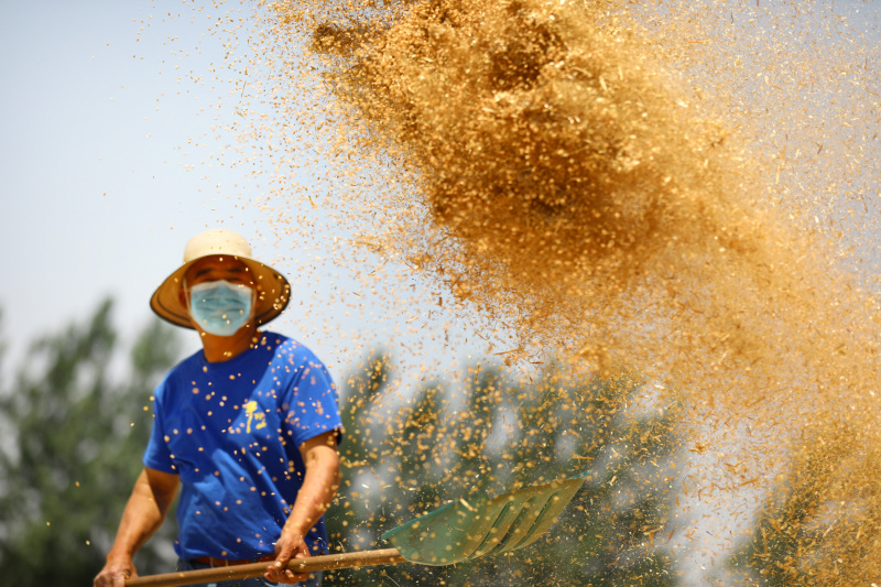 Un agriculteur vanne des récoltes de blé à Xieling, village du bourg de Sipu, dans le district de Suixi, à Huaibei, dans la province chinoise de l'Anhui (est), le 6 juin 2021