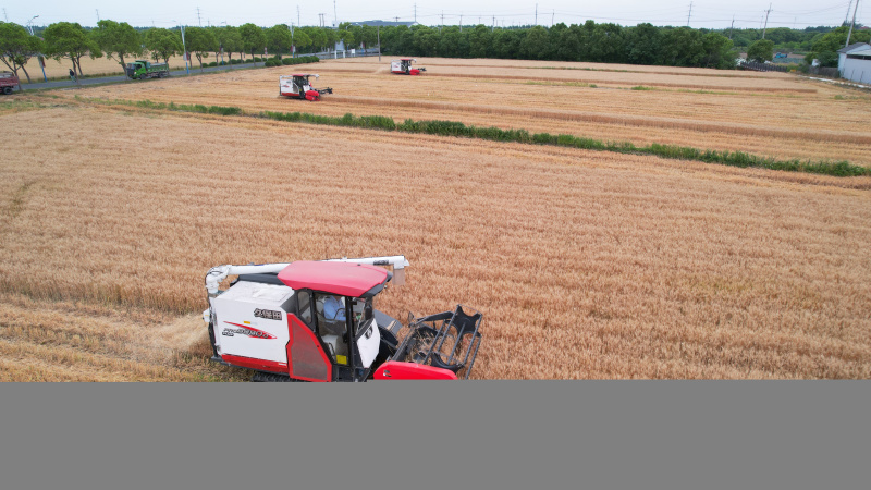Récolte du blé dans le village de Changyun, à Kunshan, dans la province chinoise du Jiangsu (est), le 21 mai 2022. - Photo : Wang Xuzho