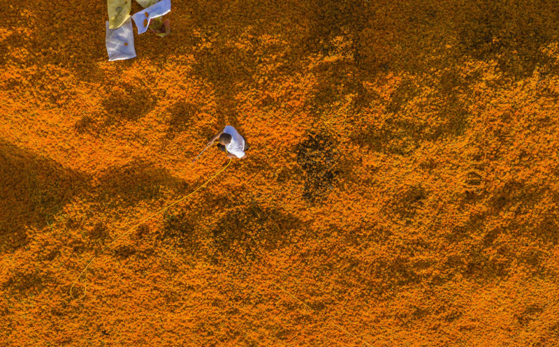Photos Chine : récolte de fleurs de souci au Xinjiang