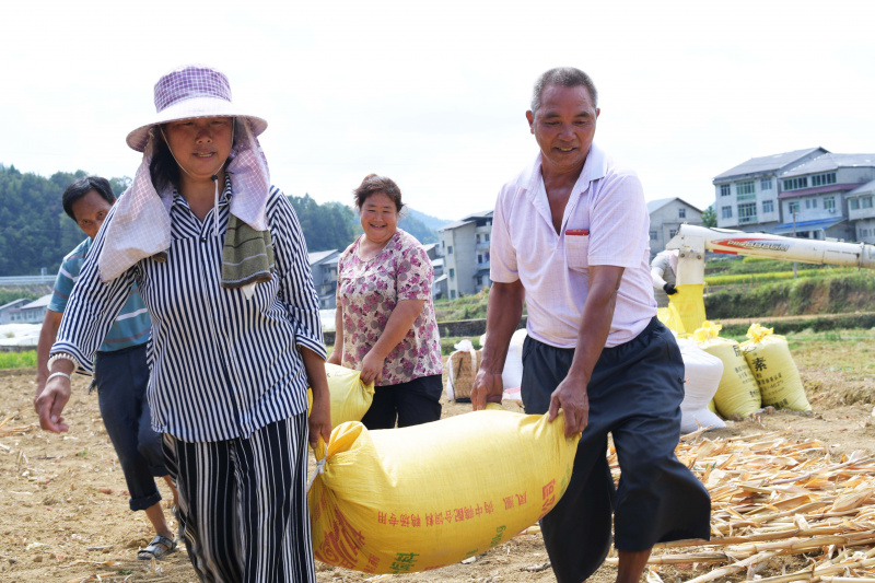 Des agricultrices emballent du riz dans le bourg de Wangcao du district de Suiyang, dans la province chinoise du Guizhou (sud-ouest), le 23 août 2022. - Photo : Yang Yi