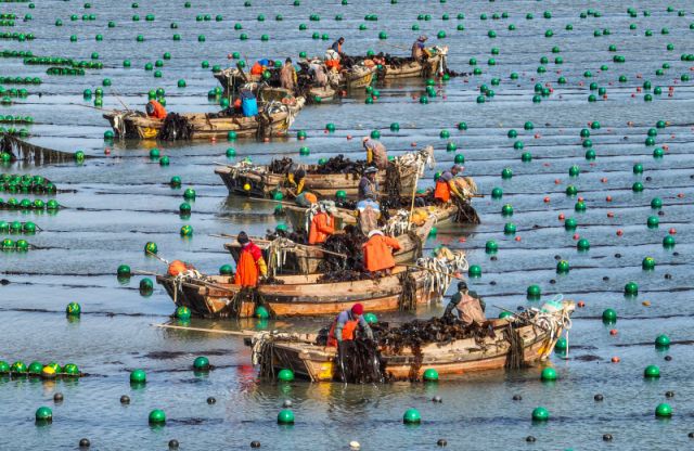 Photos Chine : récolte du varech au Shandong