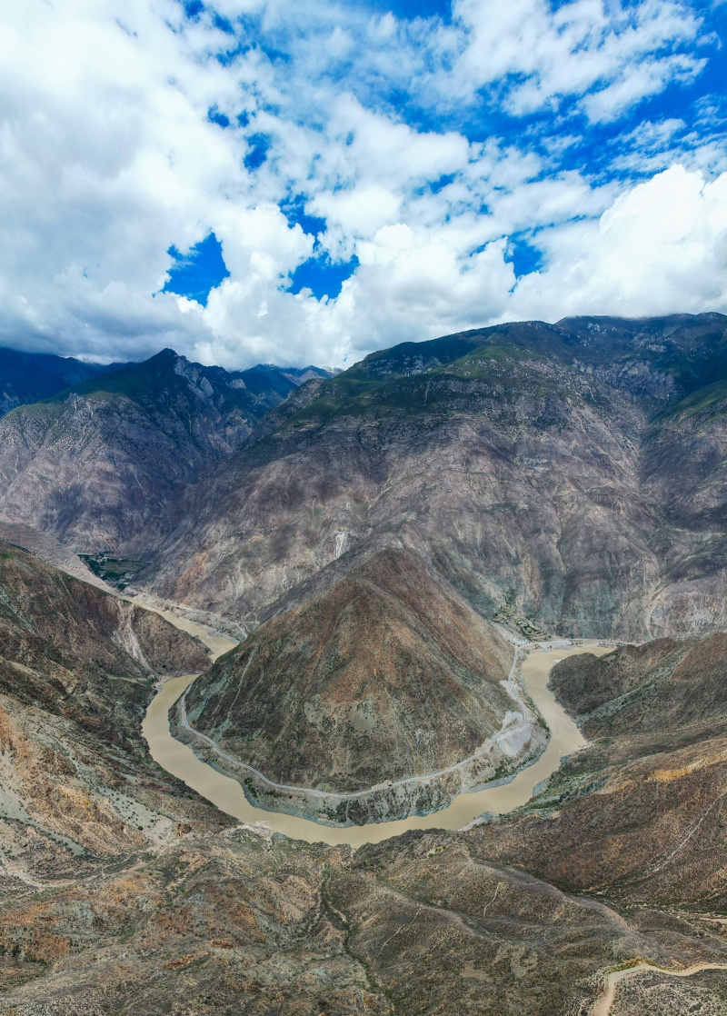 Photo aérienne d'un méandre de la rivière Jinsha, dans le cours supérieur du fleuve Yangtsé, dans le sud-ouest de la Chine, le 22 mai 2024. - Photo : Chen Xin