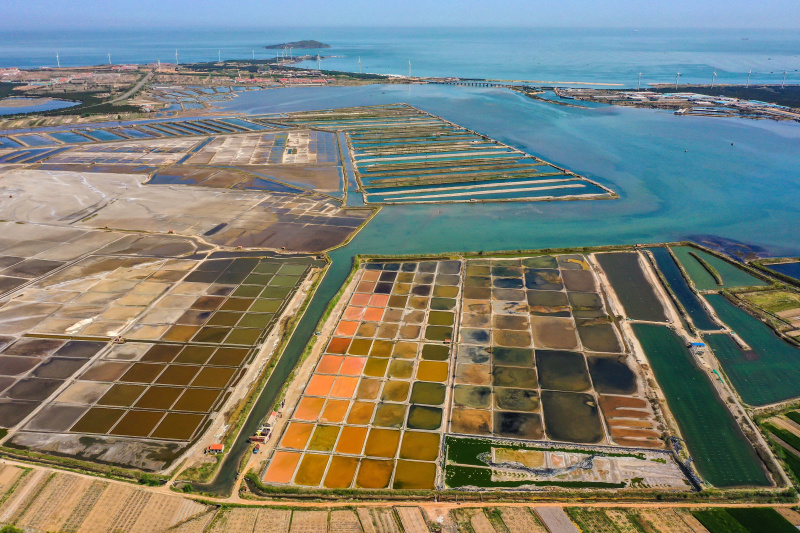 Photo aérienne prise le 9 mai 2021 montrant un patchwork de salines dans le bourg de Gangxi, à Rongcheng, dans la province chinoise du Shandong (est). - Photo : Li Xinj