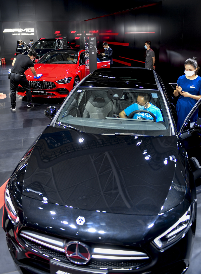 Véhicule présenté lors du 17e Salon international de l'automobile de Changchun de Chine à Changchun, dans la province du Jilin (nord-est), le 10 juillet 2020
