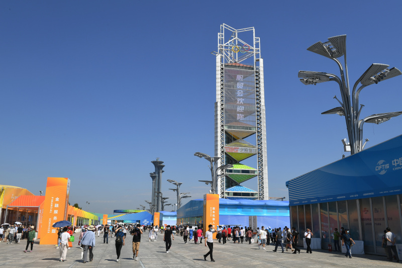Des gens visitent les zones d'exposition du Salon international du commerce des services de Chine 2020, à Beijing, capitale chinoise, le 7 septembre 2020