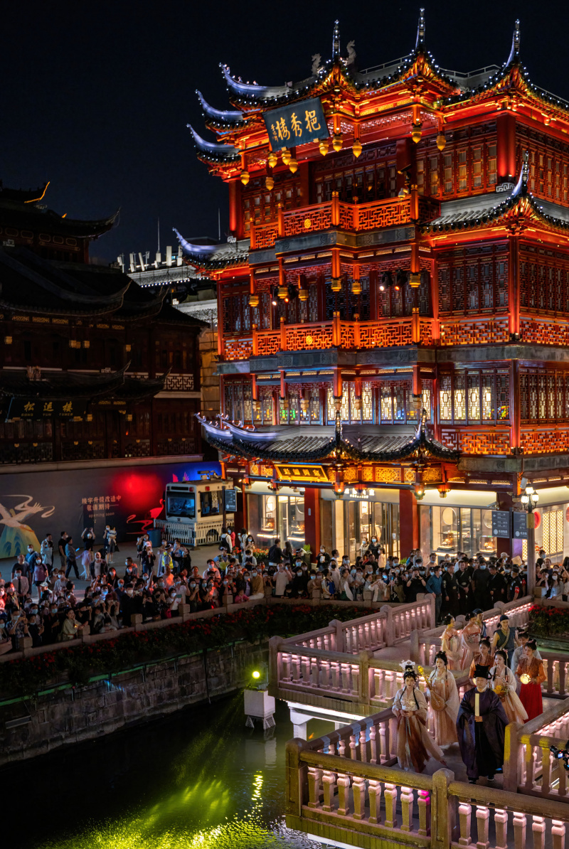 Des gens assistent à un spectacle traditionnel au centre commercial Yuyuan Garden, à Shanghai, dans l'est de la Chine, le 23 septembre 2022. (Xinh